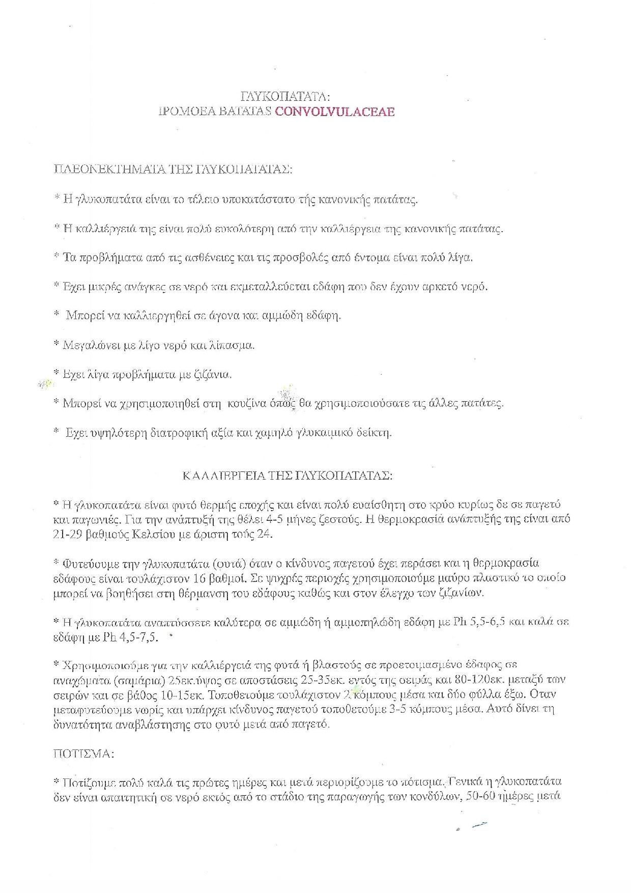 Η καλλιέργεια της γλυκοπατάτας μας δίνει τις διάσημες κονδυλώδεις ρίζες που τρώμε και διαθέτουν υψηλή διατροφική αξία. Τα τελευταία χρόνια , η γλυκοπατάτα χρησιμοποιείται όλο και περισσότερο σε συνταγές μαγειρικής και προγράμματα διατροφής.