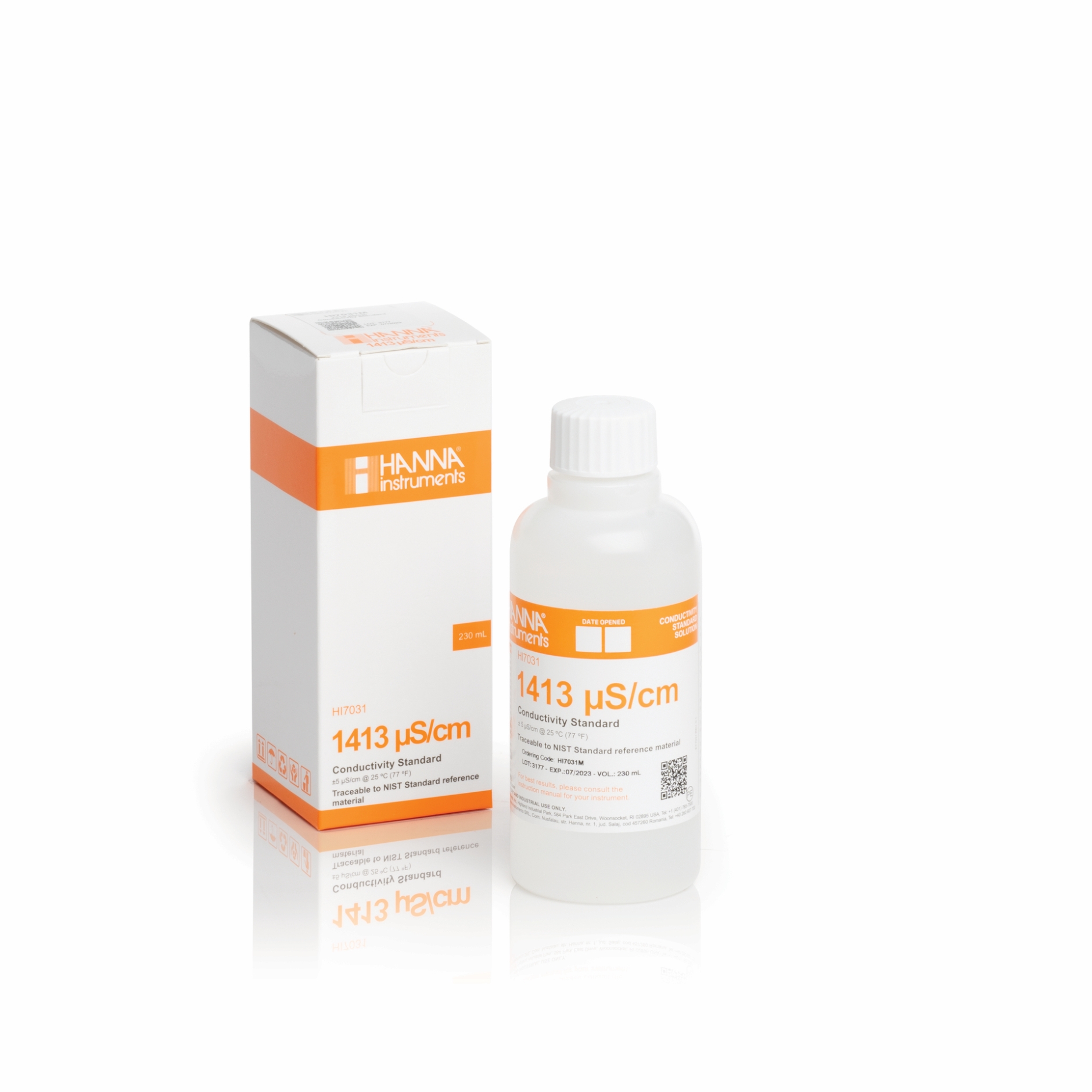 Το H7031M είναι ένα διάλυμα αγωγιμότητας 1413 µS/cm, τυποποιημένο με μετρητή αγωγιμότητας ο οποίος έχει βαθμονομηθεί με χλωριούχο κάλιο NIST 2202 SRM (Standard Reference Material) σε απιονισμένο νερό, για αναλυτική χρήση σύμφωνα με τα πρότυπα ISO 3696/BS3978.