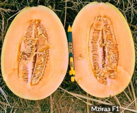 Καρπός σχήματος οβάλ, με καλή δικτύωση, βάρους 2,5 κιλών με πολύ καλή πορτοκαλί σάρκα και γλυκιά γεύση.