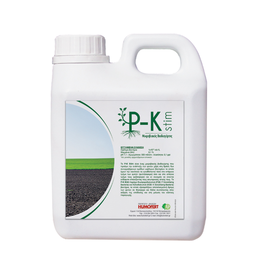 Το P-K Stim περιέχει Φωσφοροδιαλυτικά (PSB: P Solubilizing Bacteria) και Καλιοδιαλυτικά (ΚSB: K Solubilizing Bacteria) βακτήρια, τα οποία εξασφαλίζουν αποτελεσματική θρέψη των φυτών σε Φώσφορο και Κάλιο συντελώντας στην αύξηση της απόδοσης και στη μείωση του κόστους παραγωγής.