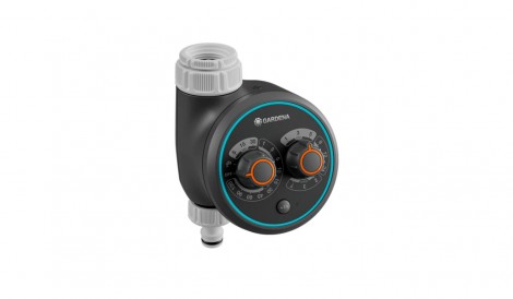 Διακριτική τοποθέτηση, εύκολη εγκατάσταση και απλή χρήση με δύο μόνο περιστρεφόμενα κουμπιά για έλεγχο διάρκειας και συχνότητας ποτίσματος. Λειτουργεί με 2 μπαταρίες ΑΑ. (δεν περιλαμβάνονται).