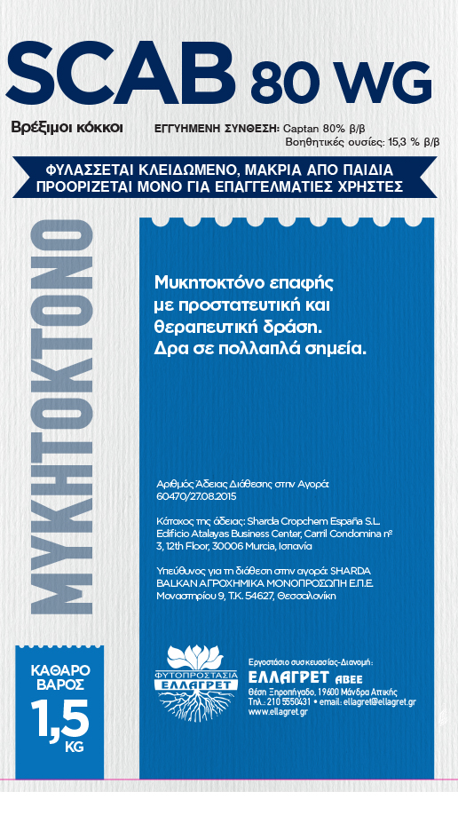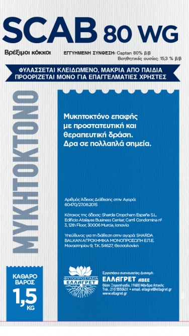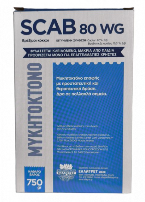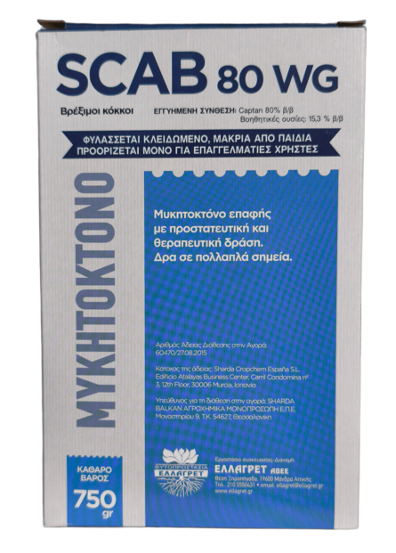 Εγγυημένη Σύνθεση: Captan 80% β/β, Βοηθητικές ουσίες 15.3% β/β.