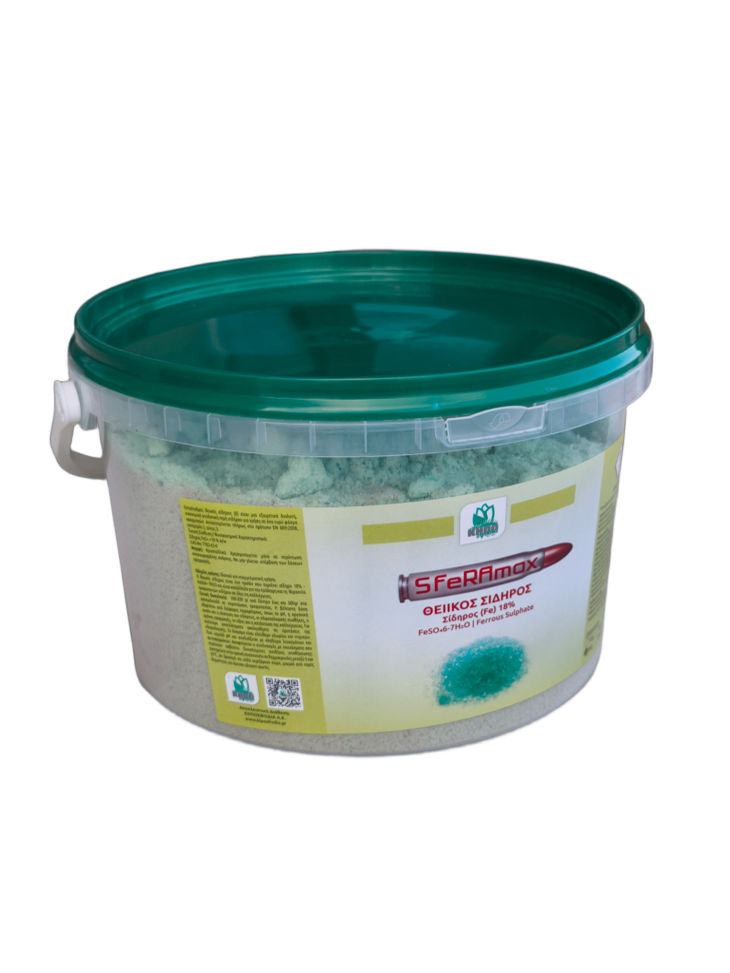 Ο θειικός σίδηρος είναι ένα προϊόν που περιέχει σίδηρο 18%-FeSΟ4 7H2O και είναι κατάλληλο για την πρόληψη και τη θεραπεία τροφοπενιών σιδήρου σε όλες τις καλλιέργειες.
