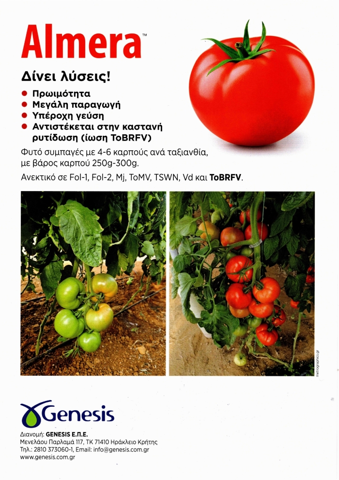 Ανεκτικό σε: Fol-1, Fol-2, Mj ,ToMV, TSWV, Vd και ToBRFV